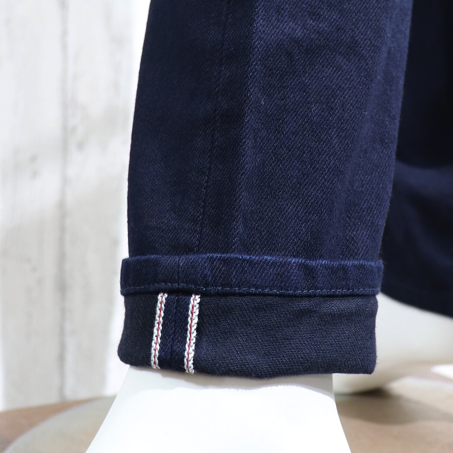 緯糸に黒糸を織り込んだストレッチ性のあるセルヴィッチデニムを使用。